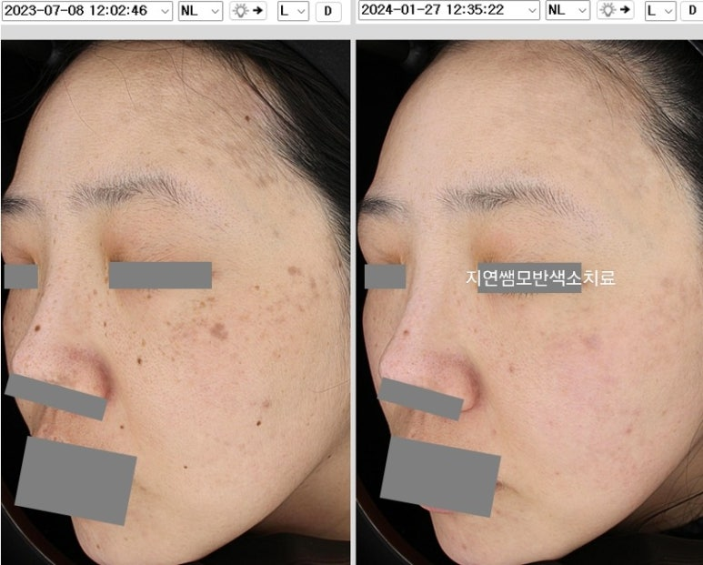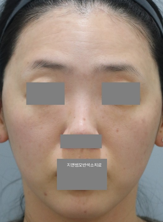 In the actual photos, it’s not very obvious, but this patient’s skin around the face, eyes, and neck tends to get red and dry easily, and she had eczema, so we had to be very cautious with the laser treatments.