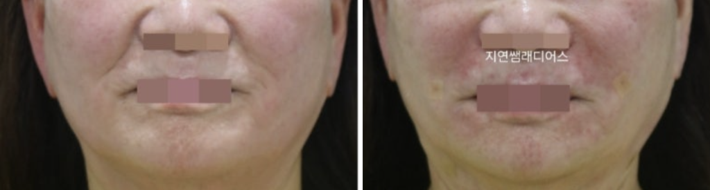 Of course, on this day, a skin booster treatment was also performed, so there are injection marks and redness on the cheeks and jaw.
