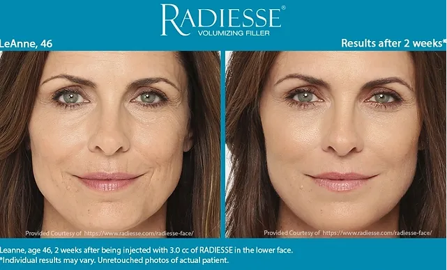 I’ll first show you the before and after photos of the Radiesse treatment.
