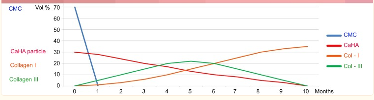 It is composed of 30% CaHA (Calcium Hydroxylapatite) and 70% CMC (Carboxymethylcellulose).