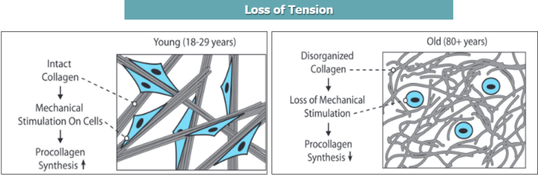 As we get older, these pillars become shorter and less functional, causing the skin to sag.