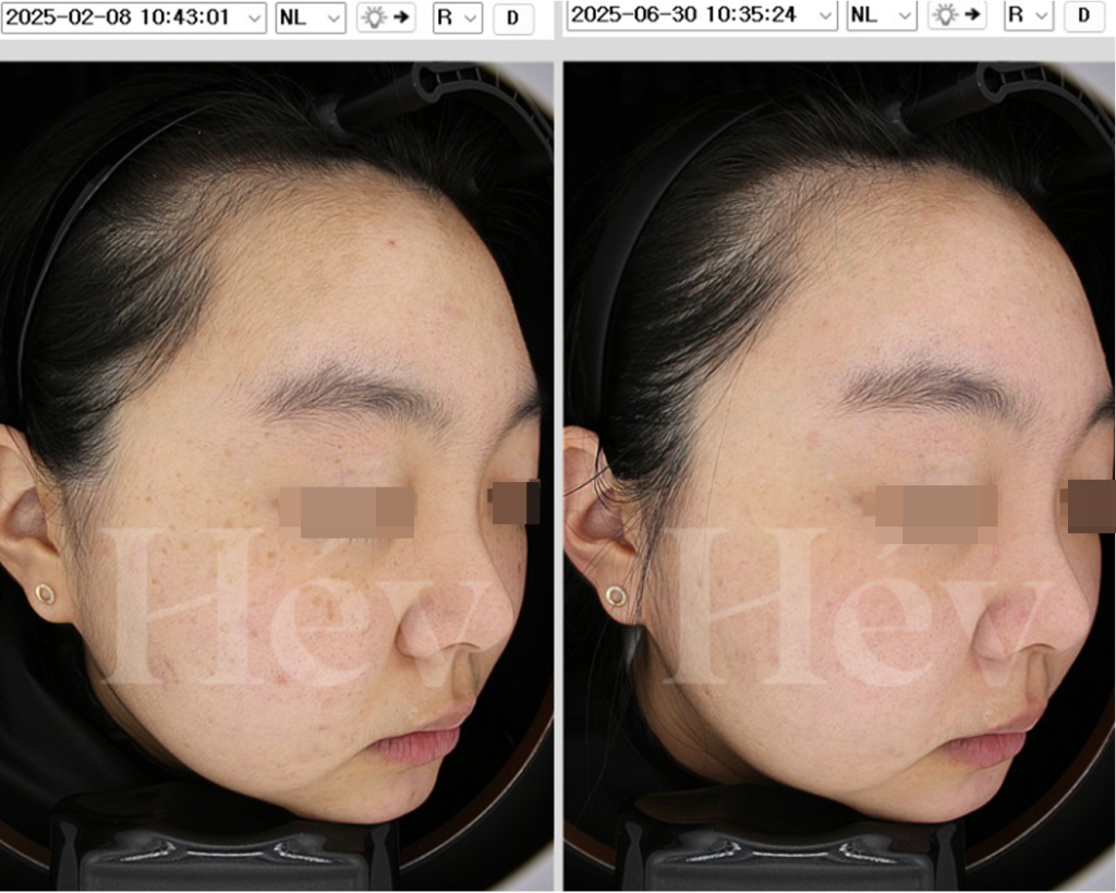 When we first met, the patient was particularly concerned about pigmentation, so we started focused treatment. During the process, skin boosters were also customized for different areas depending on the skin condition.