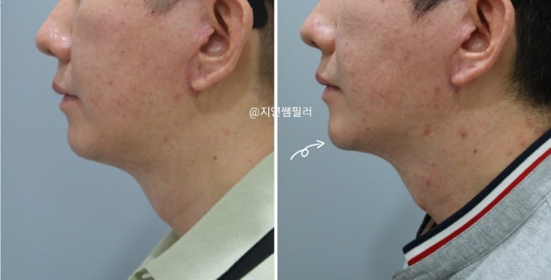With 1cc of chin filler at our Pungmu, Gimpo dermatology clinic, the lower facial line appears sharper and more defined.