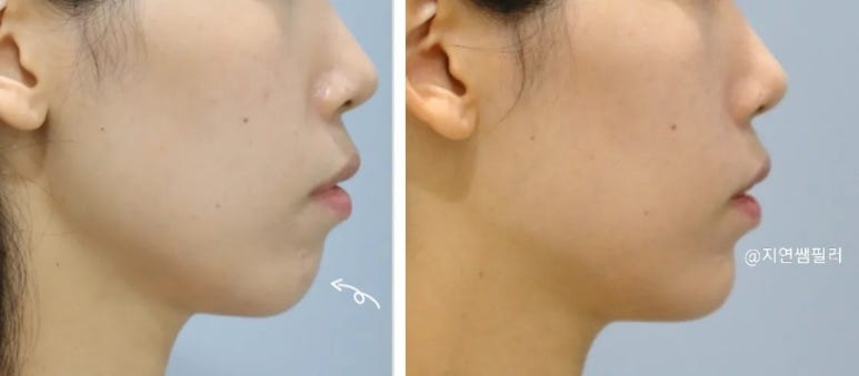 With just 1cc of chin filler, you can achieve a more refined and feminine impression (+plus), and you may also notice an improvement in the appearance of a protruding mouth.
