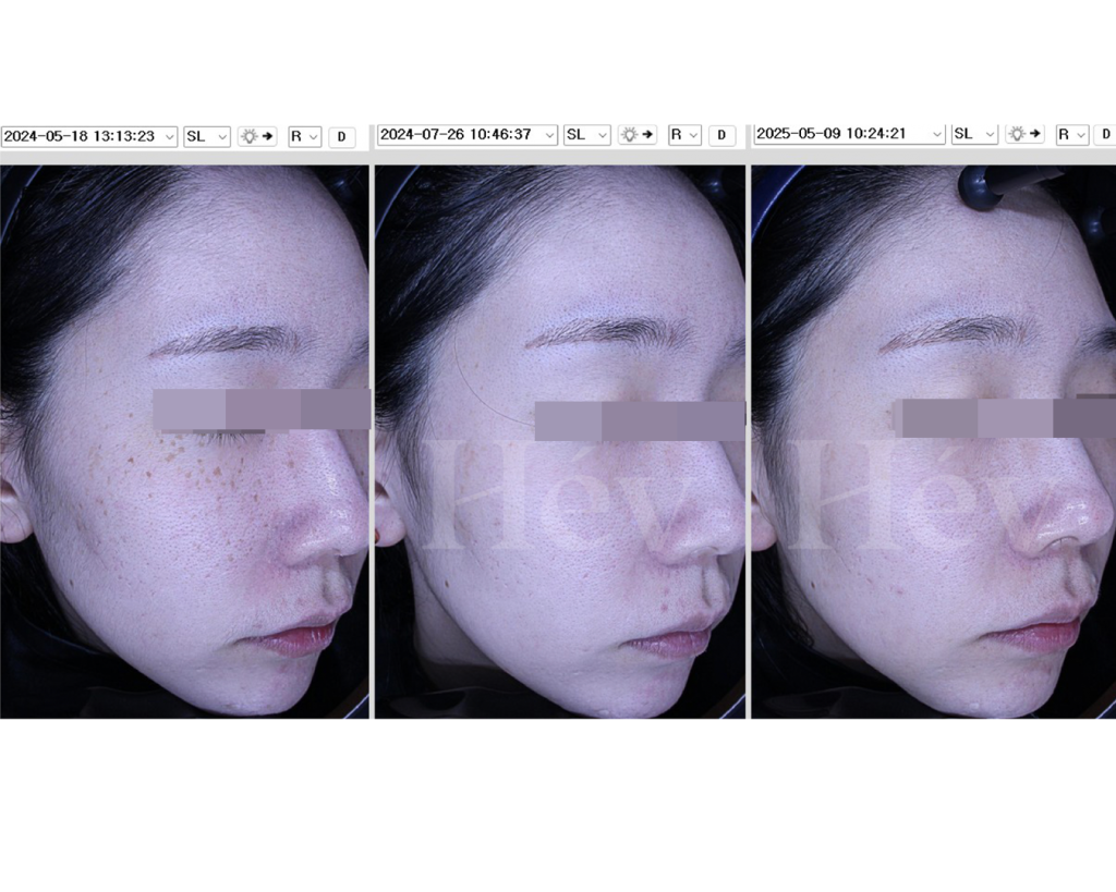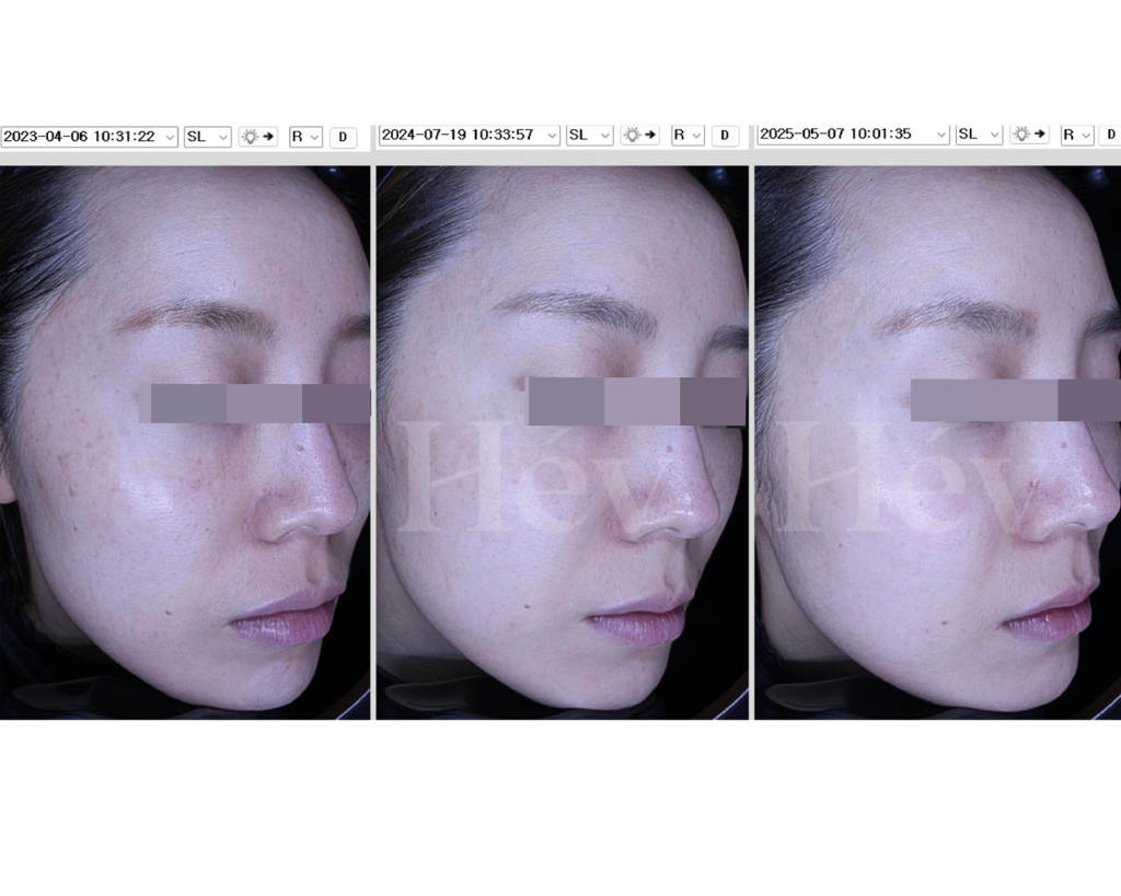 A patient who visited our clinic underwent a total of 10 sessions combining pigmentation treatment and skin boosters. Even when they returned one year later, their skin texture, hydration, elasticity, and tone were still noticeably improved.